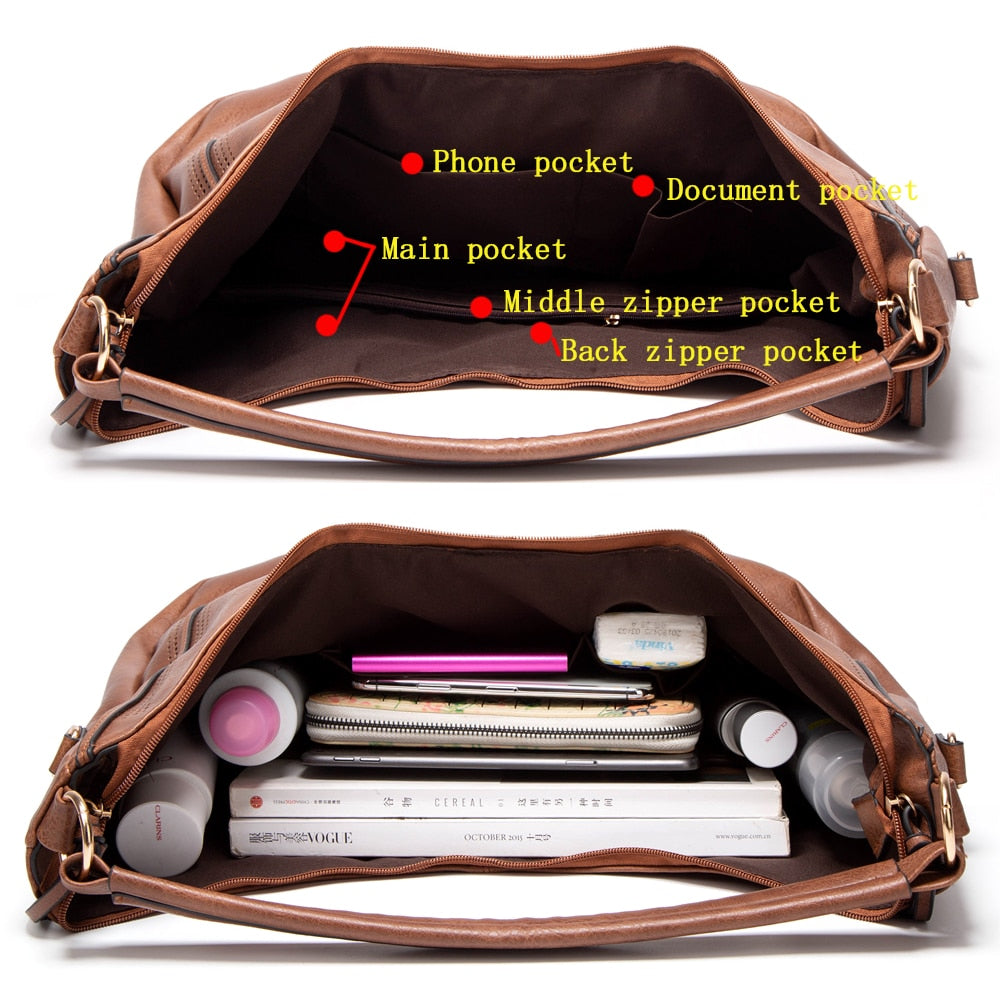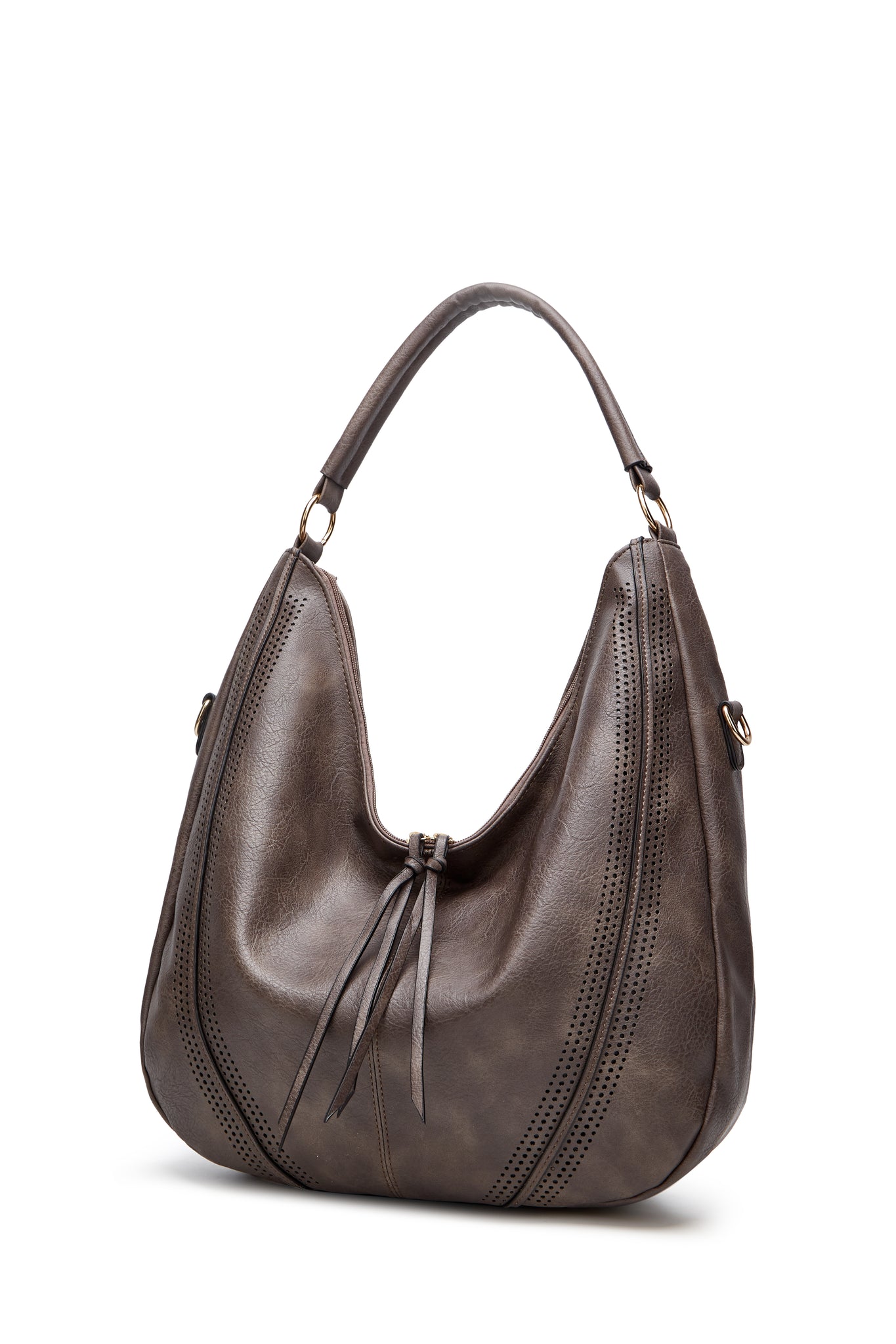 Tracy Vegan Leather Shoulder Cross Body Hobo/ Large Tote Bag: Gray