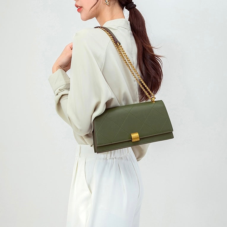 Carol Rhombus Chain Vegan Leather Purse: Green